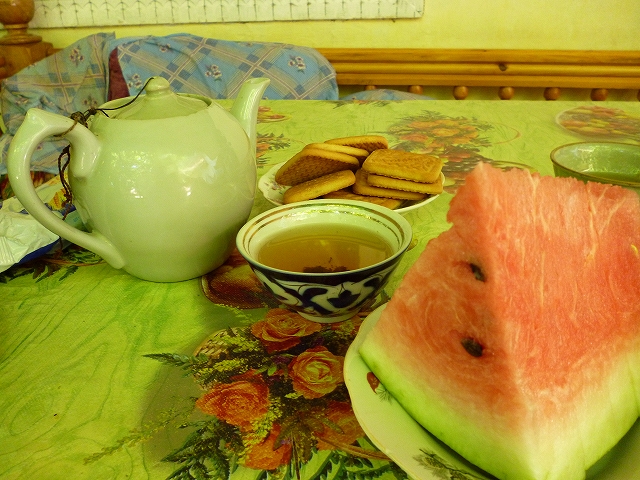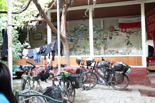 これまで殺風景だった為、気分上昇。挙句に風が久しぶりの追風でテンションUP。 バキッ・・・ . . : : : :: : : :: : ::: :: : :::: :: ::: ::: :::::::::::::::::::::::::::::::::::::: . . .... ..: : :: :: ::: :::::: :::::::::::: : ::::::::::::::::::::::::::::::::::::::::::::: Λ_Λ . . . .: : : ::: : :: ::::::::: :::::::::::::::::::::::::: /:彡ミ゛ヽ;)ー、 . ::: : :: ::::::::: ::::::::::::::::::::::::::::: / :::/:: ヽ、ヽ、 ::i . .:: :.: ::: . ::::::::::::::::::::::::::::::::::::::: / :::/;;: ヽ ヽ ::l . :. :. .:: : :: :: :::::::: : ::::::::::::::::::  ̄ ̄ ̄(_,ノ  ̄ ̄ ̄ヽ、_ノ ̄ ̄ ドーするんだよこれ・・・スペア持ってねぇ・・・ また70km程度残ってるのに・・・ 数キロ押しながら進んだら、チッコイ町が在った。 路上に 山が無くなってるからツルツル滑って力入らなくなったが無いよりは断然マシ。 これでなんとか行ける。 テンション超ダウン ハイハイ。残り半分。 それっぽい建物がポツポツ。 市内到着。 遺跡ばっかりかと思ったら意外と発展してた。 主要道路走ってたら、いきなりこれ。(シャーヒーズンダ廟。内部は後程) テンション上がってきた。 チョット迷ったが、目的の宿にも到着。歩き方、ロンプラにも乗ってる旅行者で超有名バハディールB&B。ハイシーズン中の為ヨーロピアン系旅行者は半分以上がチャリダー。 ウエルカムフルーツとかマジびびる。 因みにスイカ一玉で1000som程度(約30円)で買える。 この当時はビザ降りると思ってました。ええ。 さて次回からサマルカンド観光参ります。 走行距離 忘れた。 PR |