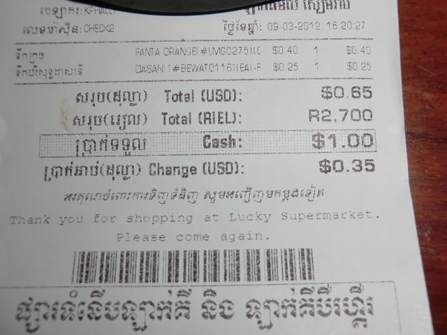 んでもって、恐ろしい事に1ドル⇒4,000リエル と言ってくる店もあれば