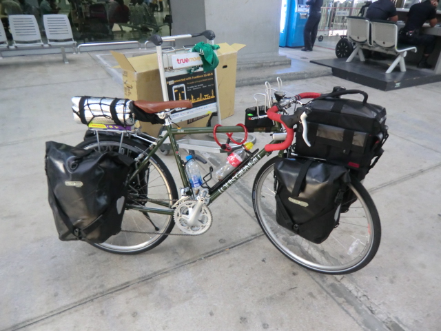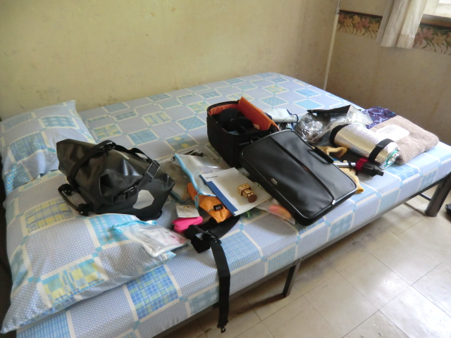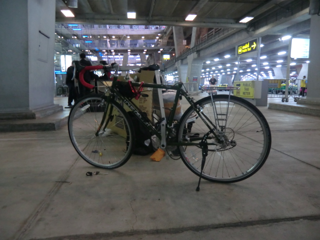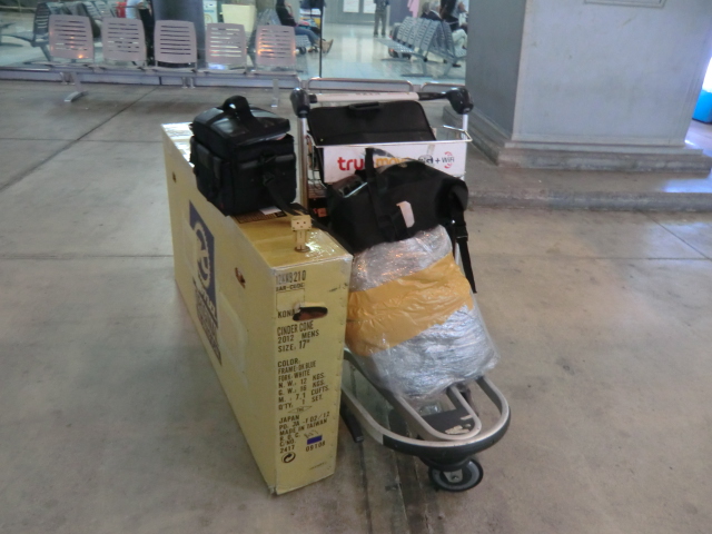 2日前になってまだそんな事してるのか、って気分だが。 そして自転車以外の荷物の梱包も完了。 自転車移動の為サイドバックが計4とフロント台座のバックが1個とどうしたって小分けになる。その為サイドバッグを纏めてラップでグルグル巻きに。 こいつらは先行でABC空港宅配を利用して空港へ送りつける。 自転車が\4,000-/バッグ(ラップの塊)が\1,980-とかだったかな? もー猶予御座いませんよ。 |